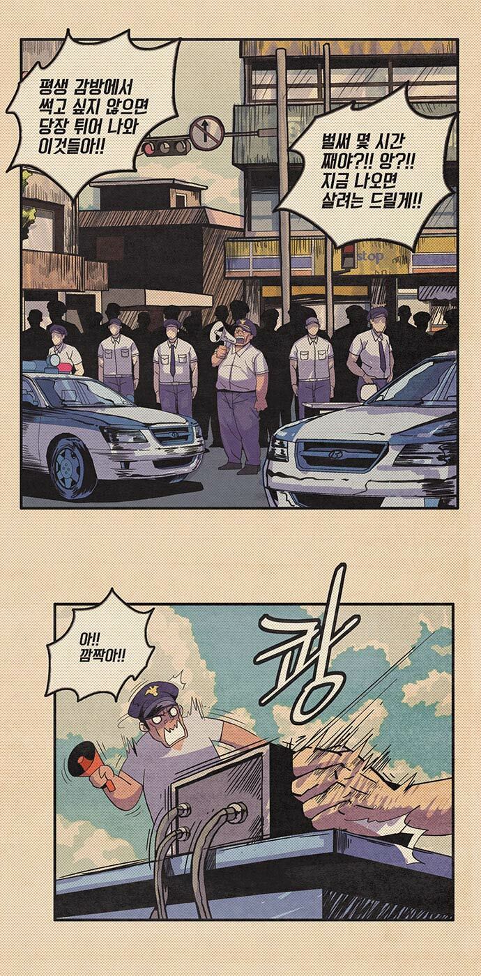경찰관: 평생 감방에서 썩고 싶지 않으면 당장 튀어 나와 이것들아! 벌써 몇시간째야?!! 앙?!! 지금 나오면 살려는 드릴게!!