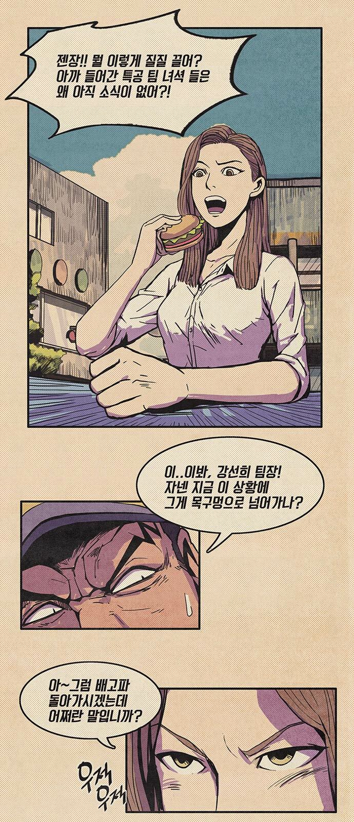 경찰관: 이..이봐, 강선희 팀장! 자년 지금 이 상황에 그게 목구멍으로 넘어가나?