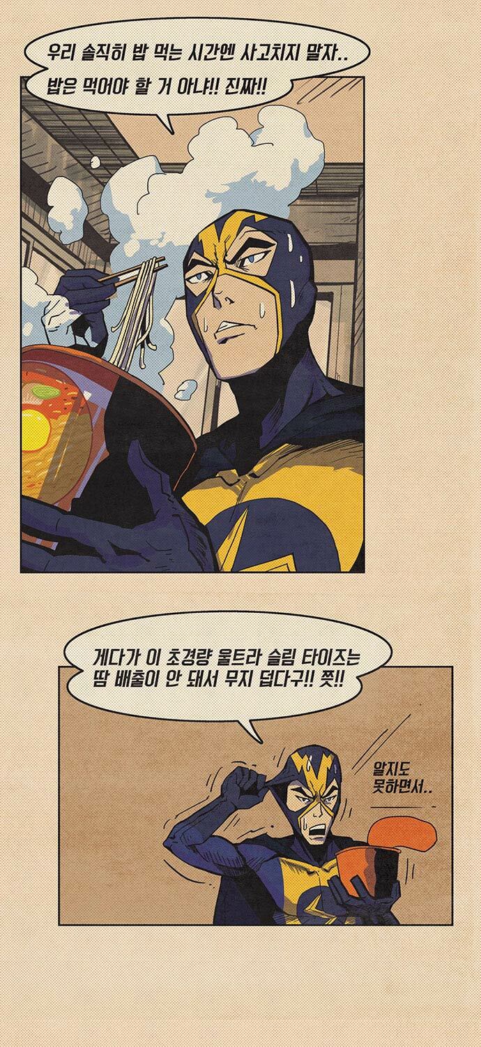 일렉트로맨: 우리 솔직히 밥 먹는 시간엔 사고치지 말자.. 밥은 먹어야 할 거 아냐!! 진짜!!