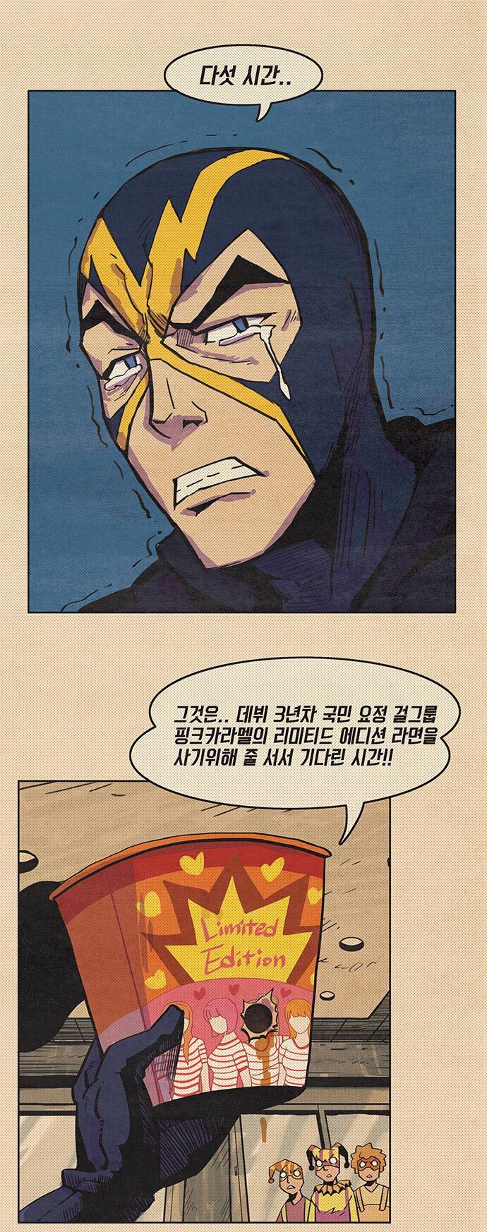 일렉트로맨: 그것은..데뷔 3년차 국민 요정 걸그룹 핑크카라멜의 리미티드 에디션 라면을 사기위해 줄 서서 기다린 시간!!