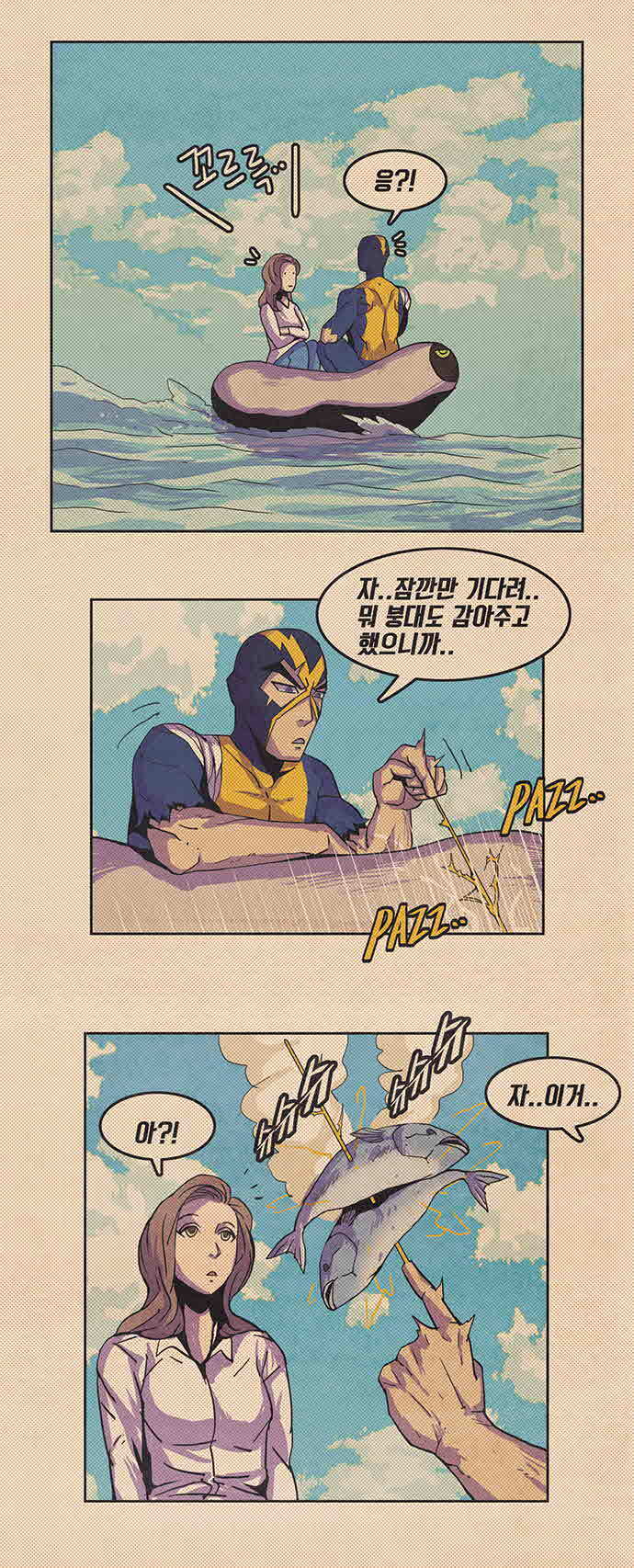 일렉트로맨: 쿠..쿨럭...하하...즉석 생선 구이..